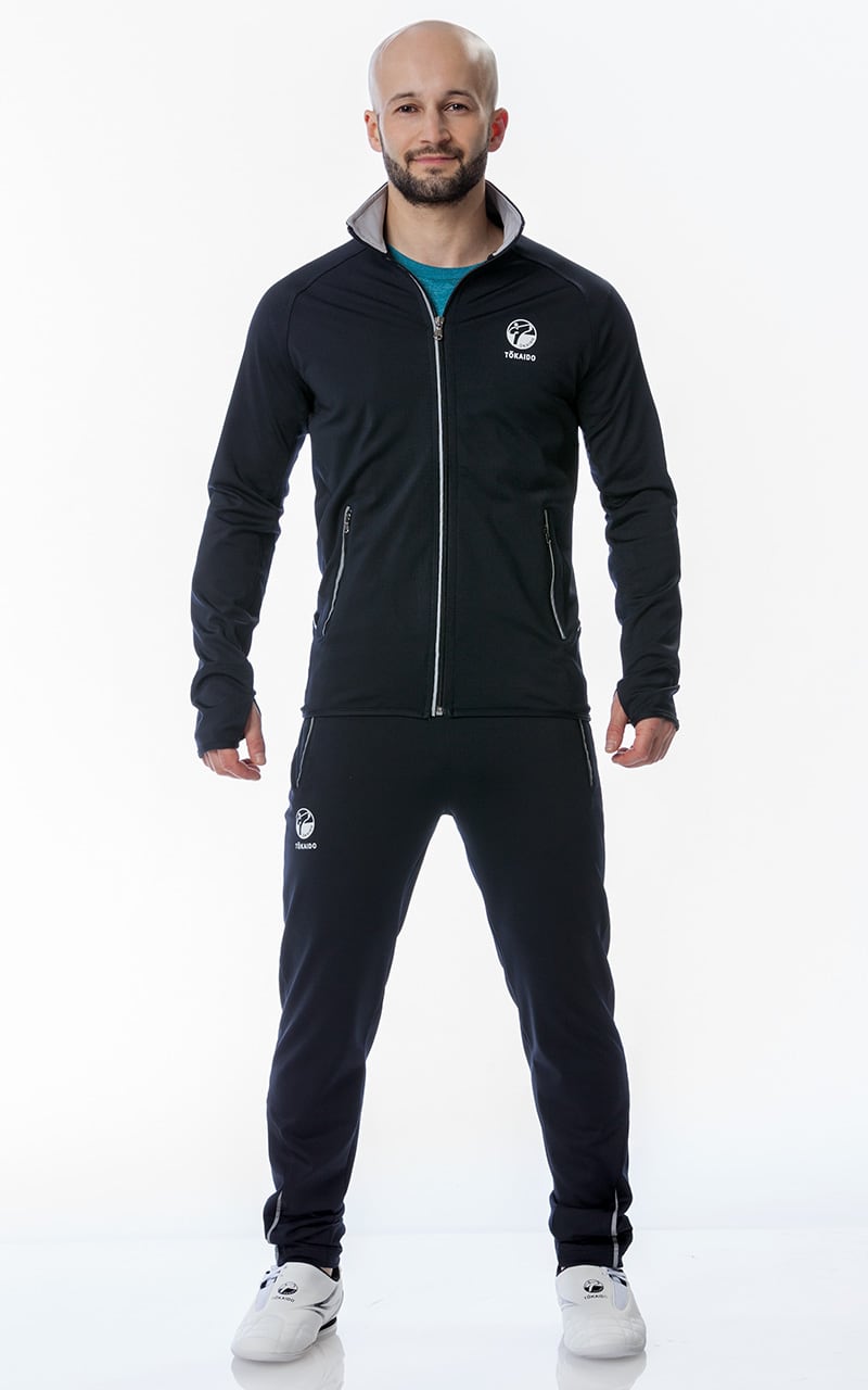 Colore: blu scuro, con strisce argentate riflettenti L’allenamento è leggermente lucido e conferisce un aspetto sportivo e di classe. Materiale: 92% poliestere & 8% elastan