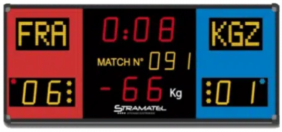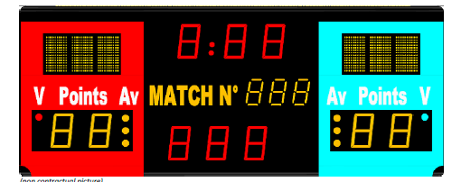 Akustisches Signal: Automatische Hupe am Ende einer programmierten Zeit (Kampfzeit, Ruhezeit, Verlängerung, Passivität).