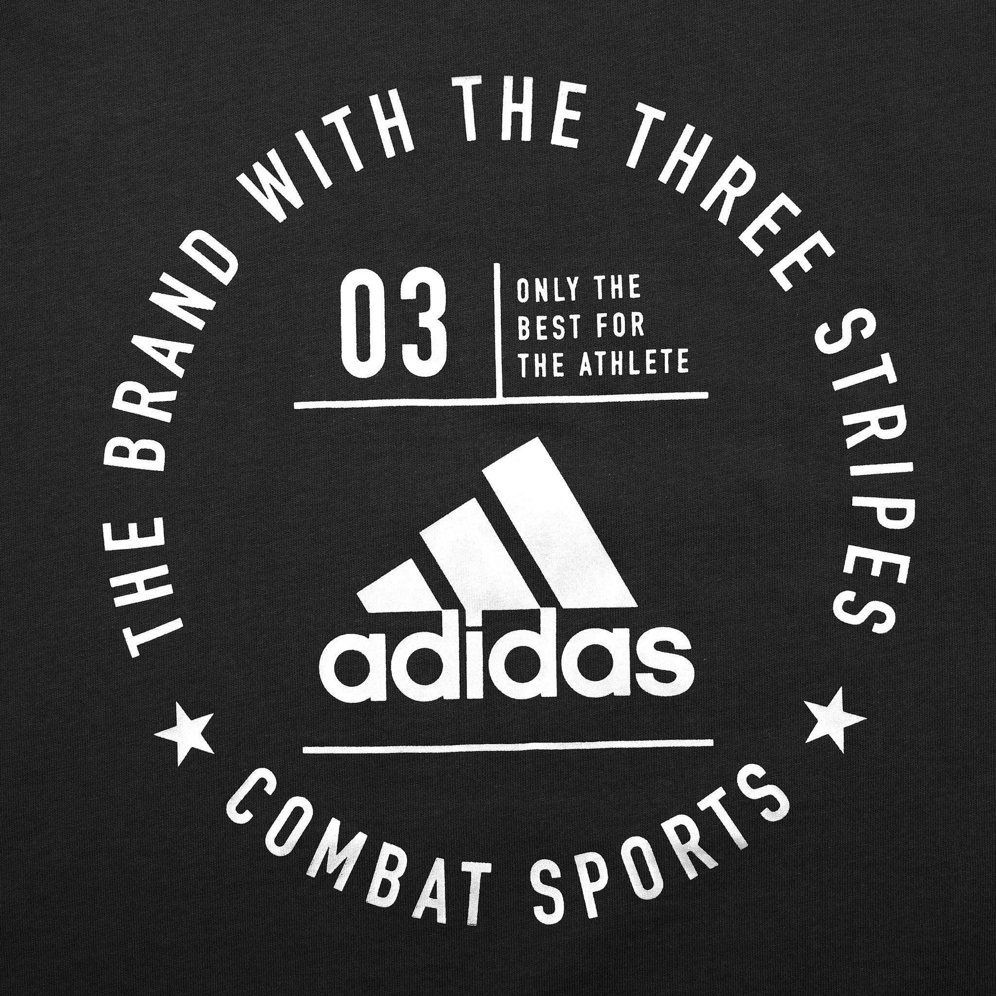T-Shirt Premium, 180 g/m2. Materiale: 100% cotone pettinato. Stampa serigrafica diretta sul petto. Passante adidas intrecciato sulla manica.