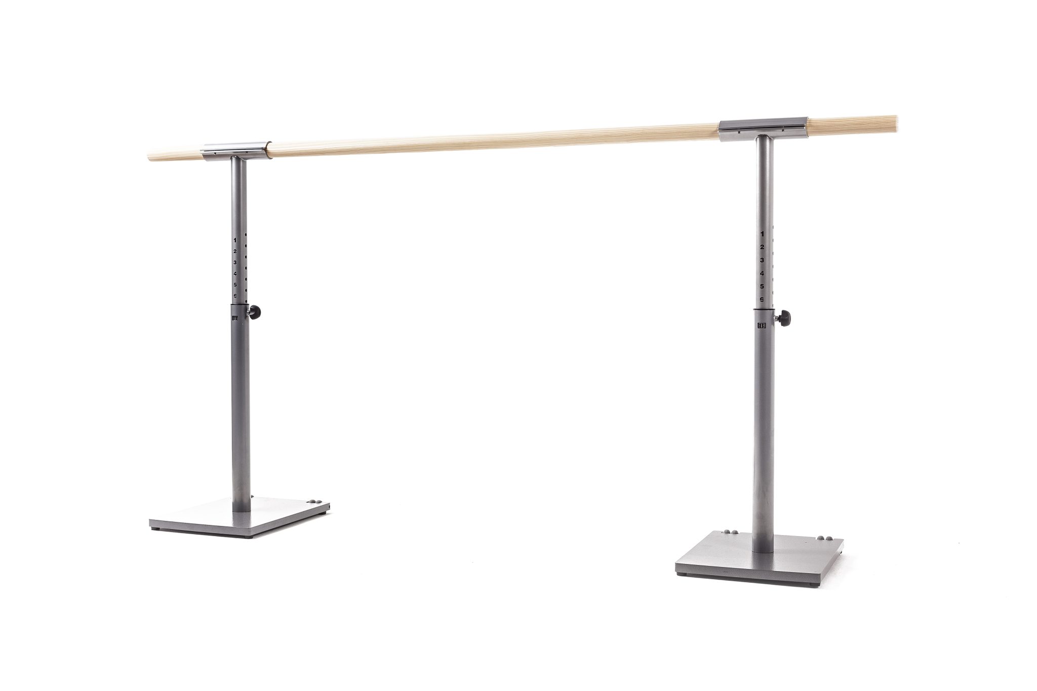 De verstelbare Isa bar wordt gebruikt in zowel dansscholen als bij particulieren thuis. Met een tussenruimte van 39 centimeter tussen de minimale en maximale hoogte en de uitstekende stabiliteit van de stalen onderstellen, is deze bar geschikt voor dansers van alle leeftijden, lengtes en gewichten. Je kunt de hoogte van de Isa bar instellen op 14 verschillende posities met behulp van een snel en eenvoudig mechanisme. De exclusieve stalen voetstukken uit het professionele assortiment van Dinamica Ballet houden de bar stevig op zijn plaats zonder dat je gaten in het hout hoeft te boren, zodat je urenlang probleemloos kunt trainen.