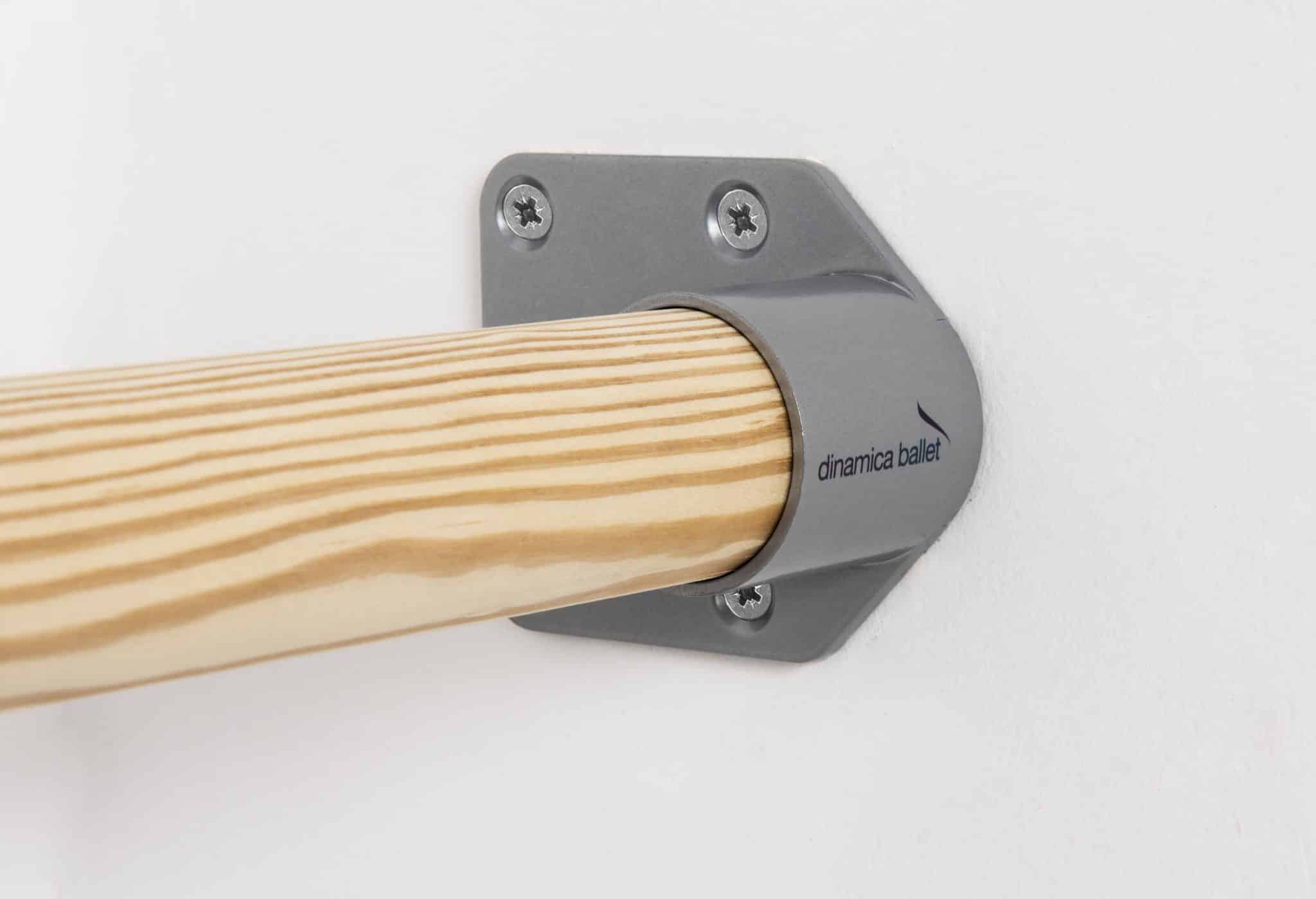 Twist wordt in een rechte hoek aan de muur of paal geschroefd om het uiteinde van de houten bar in te steken en vast te zetten. Dit systeem maakt het mogelijk om een volledig functionele balletbar te hebben tussen twee palen of twee scheidingswanden. Het is ook ideaal als de balletbarre in een hoek van de studio eindigt; met de Twist kan hij tot aan de muur worden verlengd voor extra stabiliteit. Geef je leerlingen het beste en werk in comfort met onze oplossingen om je ruimte optimaal te benutten.