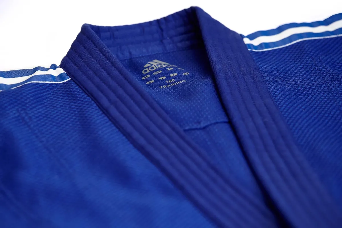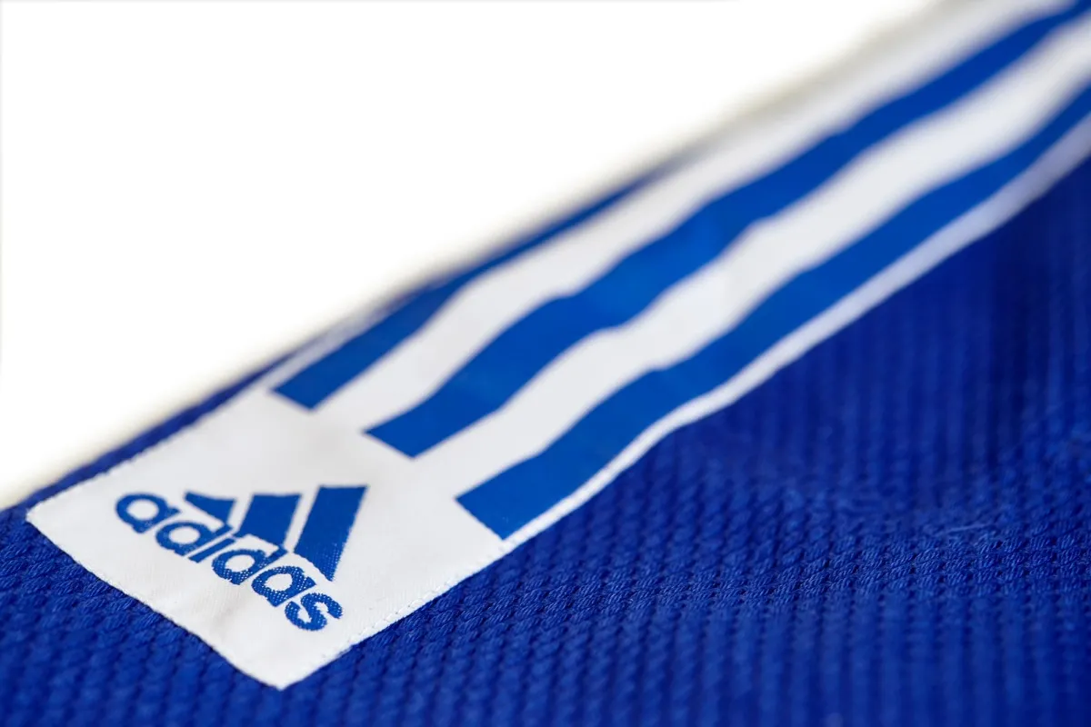 La veste de ce kimono de judo adidas est composée à 60 % de polyester et à 40 % de coton, tandis que le pantalon est composé à 52 % de polyester et à 48 % de coton.